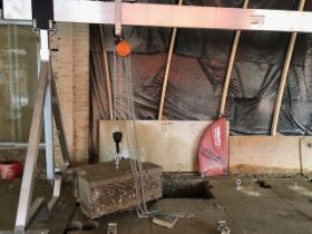 het verwijderen en afvoeren van de gezaagde beton blokken